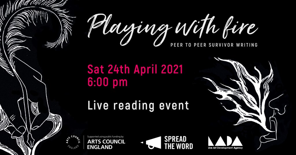 ‘Playing With Fire – live reading from survivor writers – took place on April 24th online, hosted by Live Art Development Agency featuring Jet Moon, Dolly Sen, Elinor Rowlands, Ayotomi IF, Andie Macario and guest readers from the workshop.